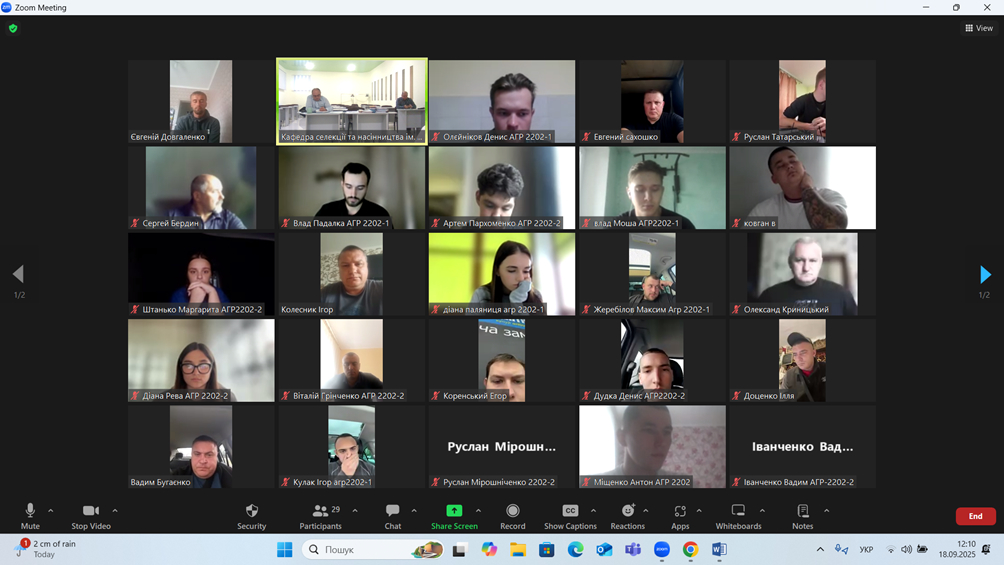 18 та 19 вересня 2025 року на кафедрі селекції та насінництва імені професора М. Д. Гончарова факультету агротехнологій та природокористування відбувся захист звітів з виробничої практики студентами спеціальності 201 – Агрономія ступеня вищої освіти ‟Бакалавр”. Здобувачі у повній мірі представили інформацію про проходження виробничої практики та оволоділи навичками, необхідними для майбутньої професії.
