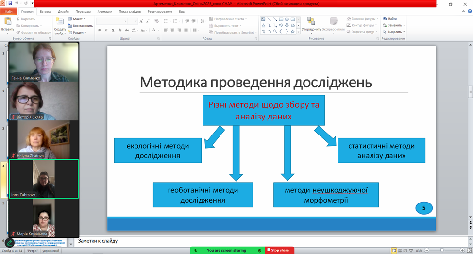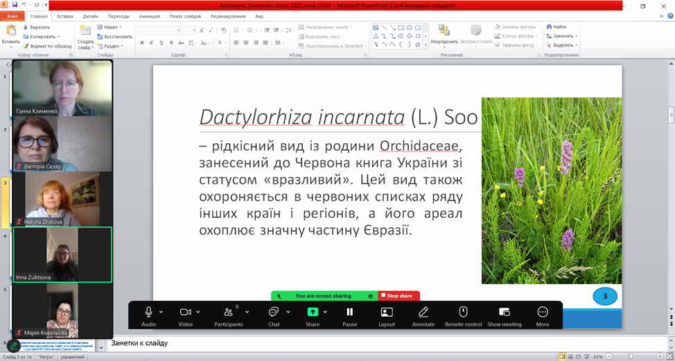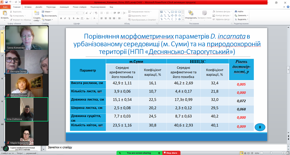 На кафедрі екології та ботаніки 20 жовтня 2025 року пройшов науковий семінар «Оцінка стану популяцій рідкісних видів рослин урбанофлори м. Суми» (доповідачі к.б.н., доц. Кирильчук К.С., аспірант Клименко І.М.). У межах заходу були представлені результати польових досліджень рідкісних та вразливих видів рослин, що зростають у межах міста Суми, обговорено особливості їх адаптації до умов урбанізованого середовища, основні загрози існуванню популяцій та чинники, що впливають на їх чисельність і життєздатність.