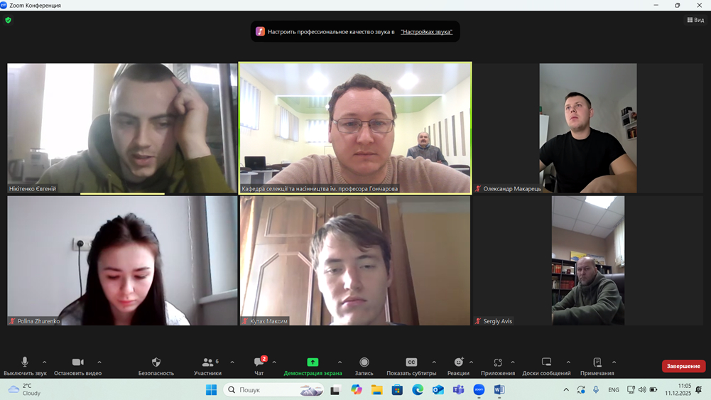 11 – 12 грудня 2025 року на кафедрі селекції та насінництва імені професора М. Д. Гончарова відбувся попередній захист кваліфікаційних робіт здобувачів ступеня вищої освіти «Магістр» за спеціальністю 201 – Агрономія. Здобувачами було представлено результати наукових досліджень, озвучено висновки та пропозиції виробництву. Серед присутніх відбулася жвава дискусія щодо актуальності тематик, зроблених висновків та презентаційних матеріалів. Було ухвалене рішення про допуск кваліфікаційних робіт до захисту перед екзаменаційною комісією.