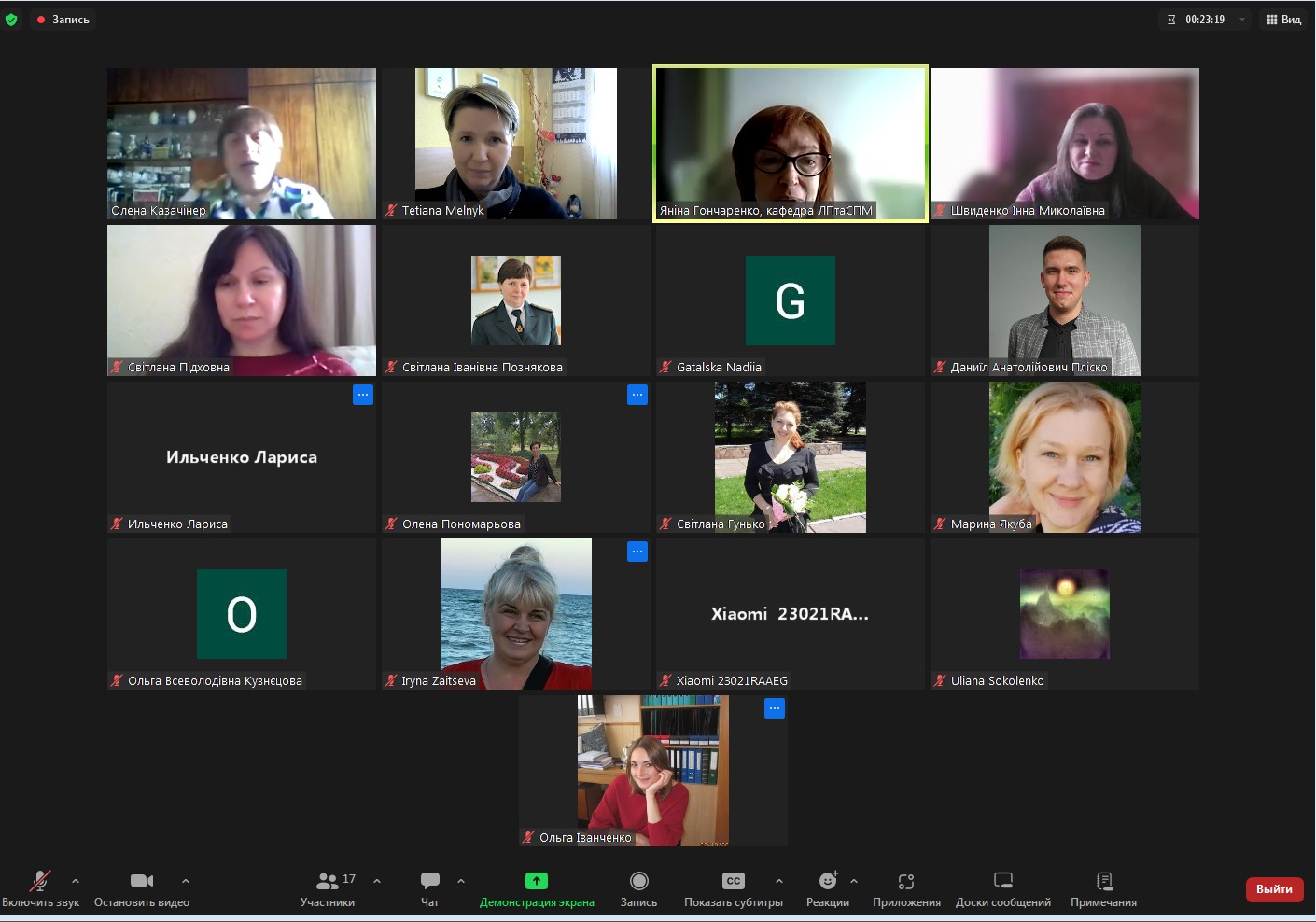 Професор кафедри садово-паркового та лісового господарства Тетяна МЕЛЬНИК взяла участь у науково-практичному вебінарі, присвяченому актуальним питанням інклюзивності у вищій школі. Захід провела Олена Семенівна Казачінер – доктор педагогічних наук, професор, професор кафедри корекційної психопедагогіки та здоров’я людини Харківського національного педагогічного університету імені Г. С. Сковороди.
