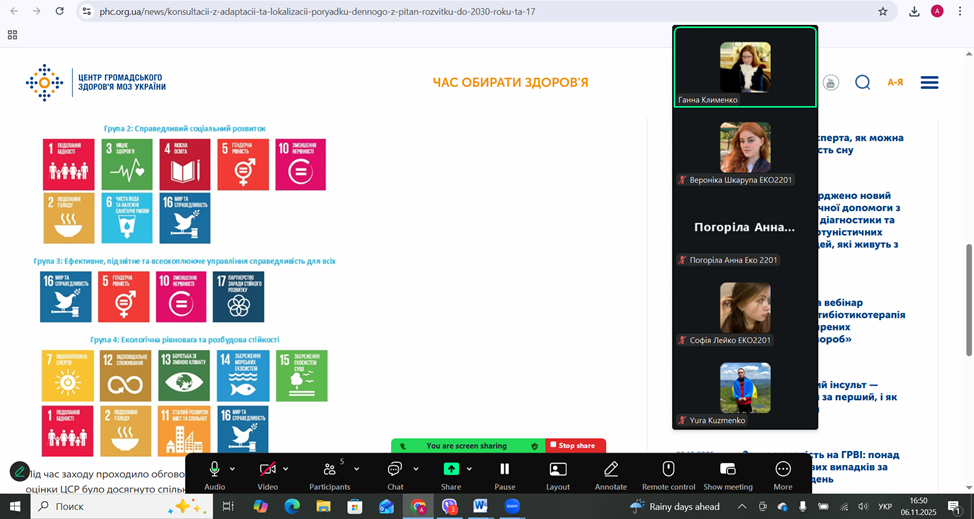 У групі ЕКО 2201 відбулося заняття, присвячене аналізу Цілей сталого розвитку (Sustainable Development Goals, SDGs) у контексті функціонування та розвитку сучасних міст.