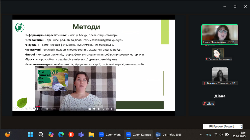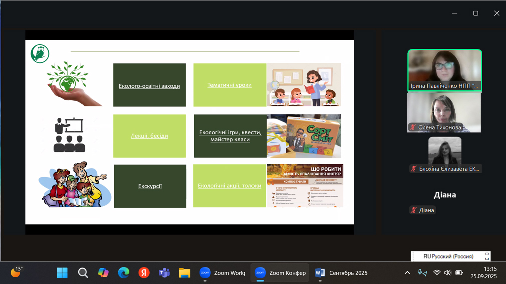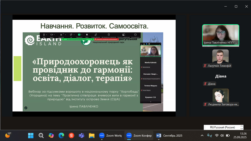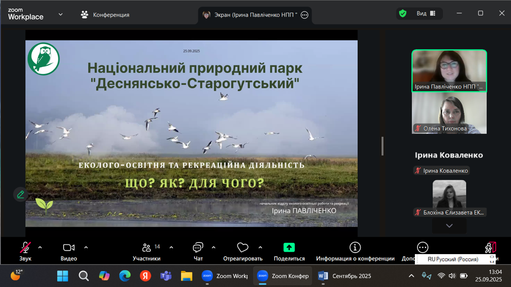 25 вересня 2025 р. відбулася гостьова лекція начальника Відділу еколого-освітньої роботи та рекреації НПП «Деснянсько-Старогутський» Павліченко Ірини Сергіївни на тему: «Робота еколога у відділі еколого-освітньої роботи та рекреації Національного природного парку «Деснянсько-Старогутський» для студентів групи ЕКО 2301, яка була організована доцентом кафедри екології та ботаніки О.М. Тихоновою. Під час зустрічі зі студентами лектор ознайомила здобувачів спеціальності «Екологія» зі специфікою роботи в екологічній просвіті, акцентувала увагу на актуальних проблемах охорони довкілля у сучасних умовах та проведенні еколого-просвітницької діяльності для різних верств населення. Лектор продемонструвала форми організації екологічної роботи з різними віковими категоріями громадян. Ірина Сергіївна наголошувала на перспективності тісної співпраці Сумського національного аграрного університету і НПП «Деснянсько-Старогутський» і важливості підготовки фахівців спеціальності «Екологія» у умовах кліматичних і антропогенних впливів на довкілля. Лекція викликала інтерес в студентів та бажання проходити виробничу практику на базі природоохоронної організації.