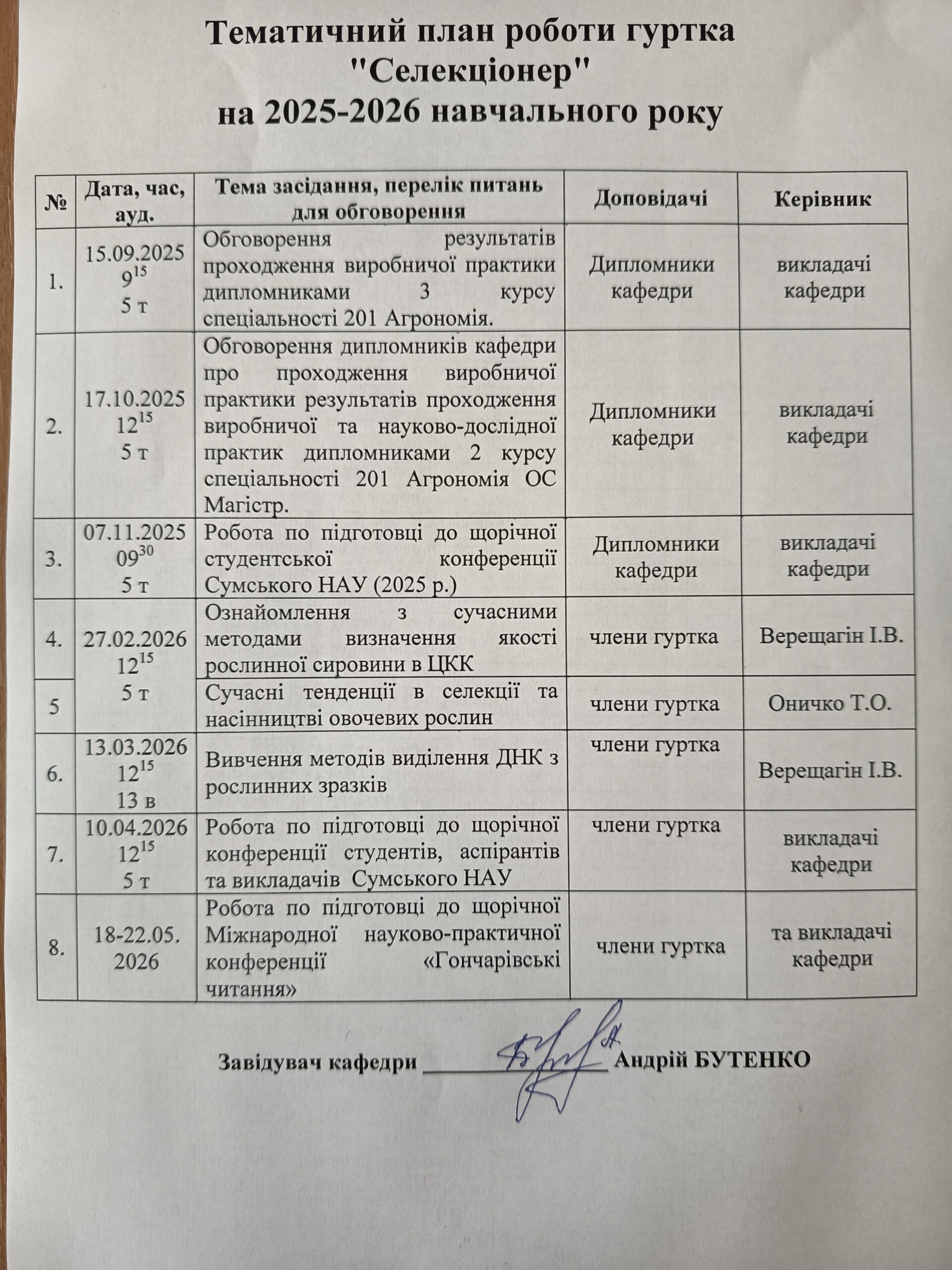 КАФЕДРА СЕЛЕКЦІЇ І НАСІННИЦТВА ІМ. ПРОФЕСОРА М.Д. ГОНЧАРОВА
