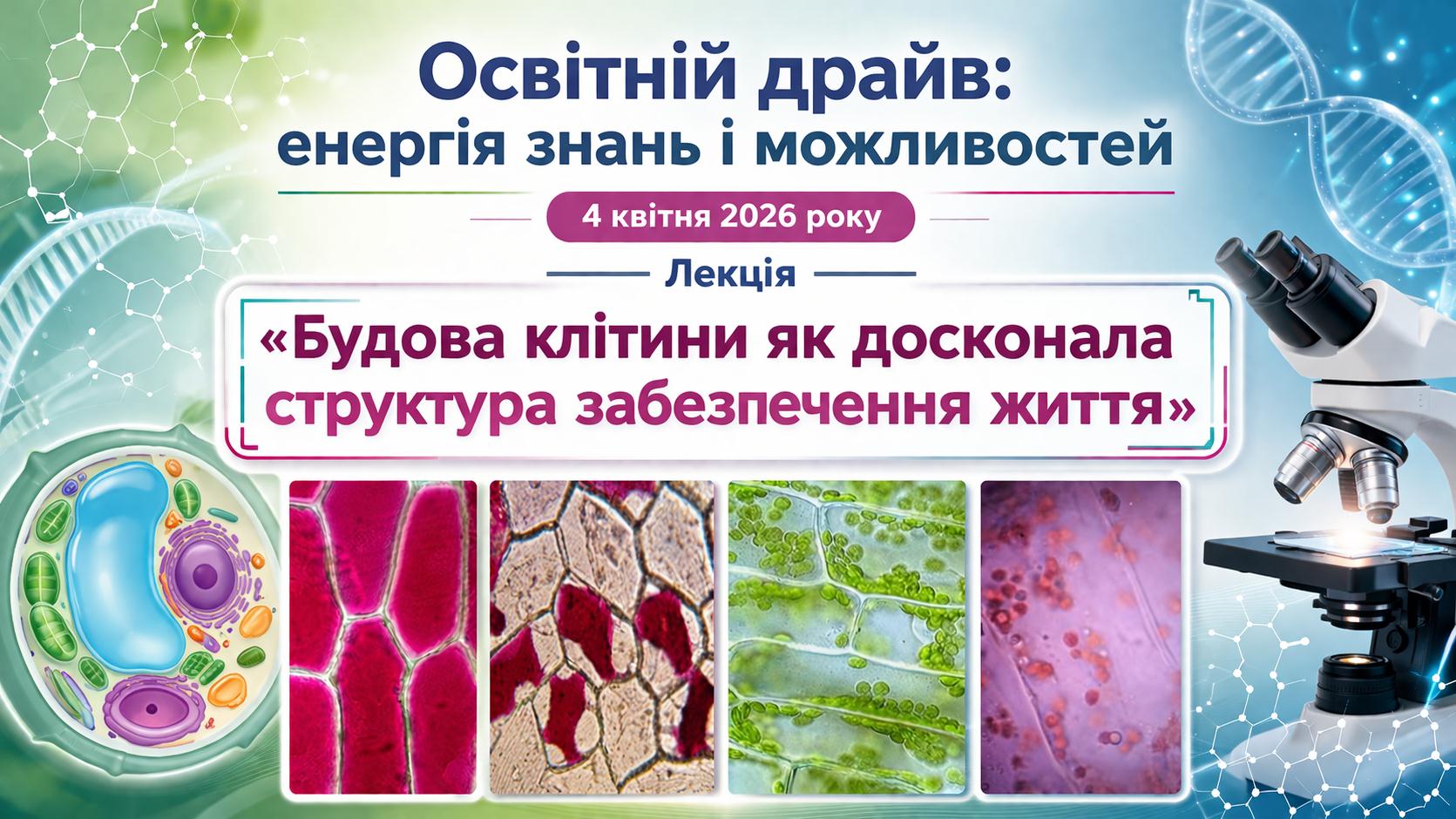 У межах проведення освітнього інтенсиву «Освітній драйв: енергія знань і можливостей» 4 квітня 2026 року для слухачів групи «Молода генерація Сумщини» природничого профілю підготовки, які виявляють інтерес до наукових досліджень і підготовки учнівських проєктів у галузі природничих наук, викладачем кафедри екології та ботаніки Людмилою БОНДАРЄВОЮ було проведено лекційне заняття на тему «Будова клітини як досконала структура забезпечення життя».