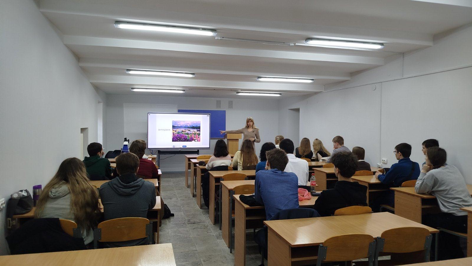 Під час заняття слухачі ознайомилися з особливостями будови рослинної клітини, зокрема процесом плазмолізу та роллю вакуолі у водному обміні, а також із запасними поживними речовинами рослинної клітини; мали змогу спостерігати демонстрацію зображень із світлового мікроскопа в реальному часі. Особливу увагу було приділено встановленню зв’язку між будовою клітини та функціонуванням рослинного організму в цілому, що сприяло поглибленню розуміння цілісності живих систем і підвищенню мотивації слухачів до подальшої науково-дослідної діяльності у сфері природничих наук.