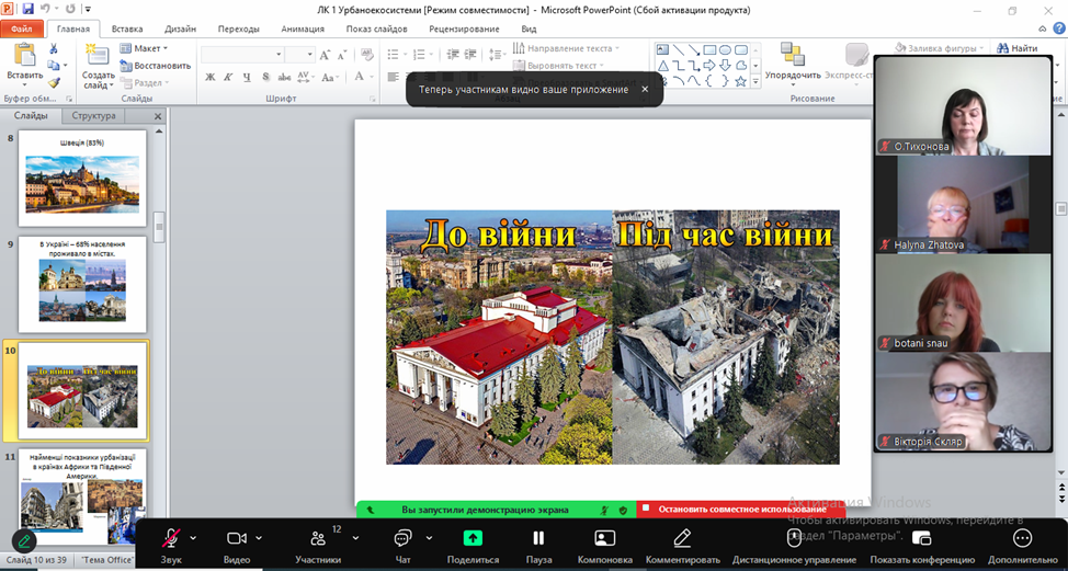 Наприкінці вересня 2025 року відбувся методичний семінар «Інноваційні освітні технології у викладанні Екології міських систем в умовах війни та післявоєнного відновлення». Доповідачем виступила к.б.н., доцент Клименко Г.О., яка акцентувала увагу на сучасних підходах до формування екологічної свідомості студентів. Під час семінару обговорювалися питання інтеграції цифрових ресурсів, дистанційних форм навчання та практико-орієнтованих завдань. Особливу увагу приділено адаптації освітнього процесу до умов воєнного часу та перспективам його розвитку у період відбудови країни. Захід сприяв обміну досвідом і визначенню напрямів удосконалення методики викладання дисципліни.