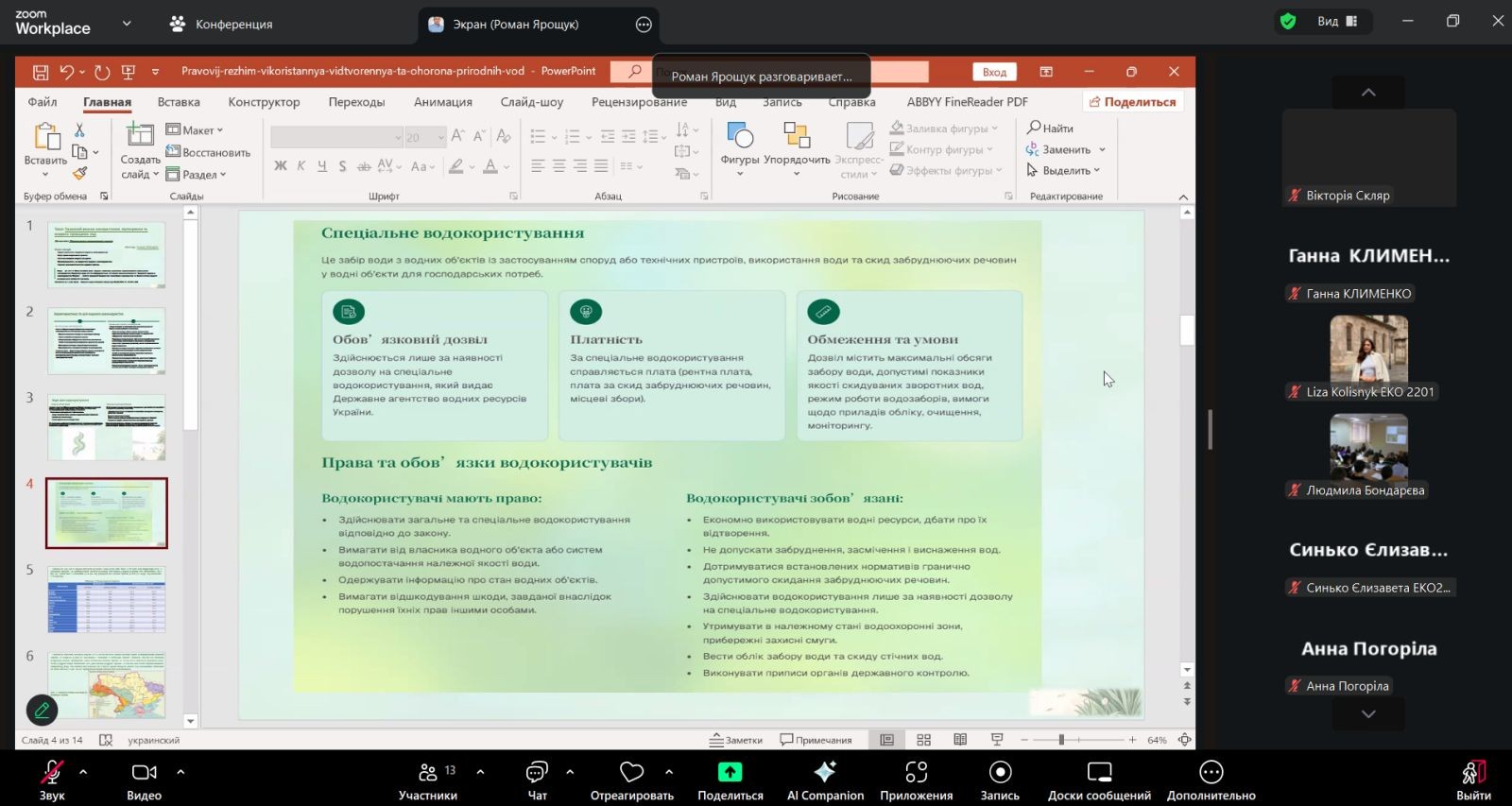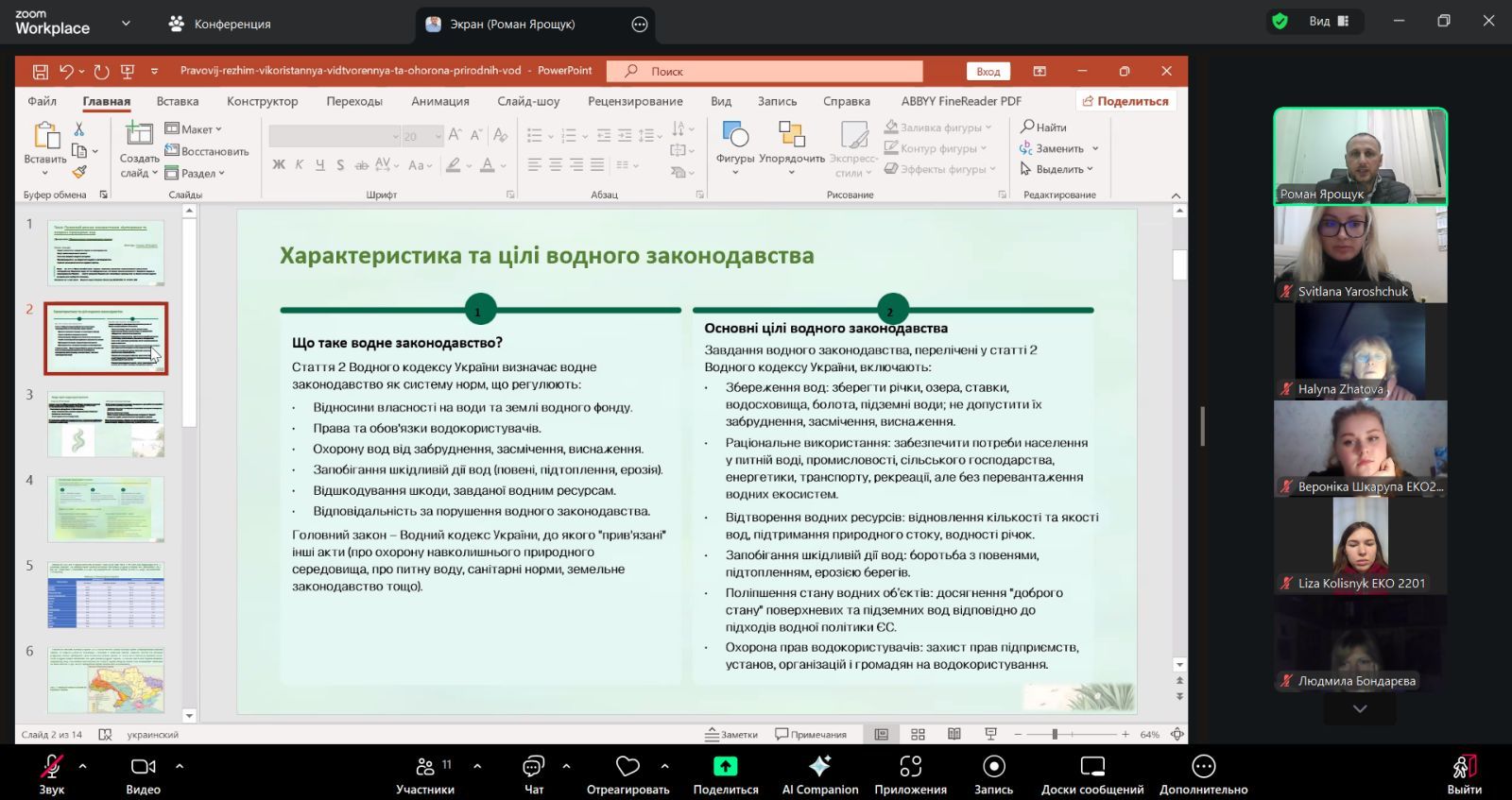 25 листопада 2025 року на кафедрі екології та ботаніки була проведена відкрита показова лекція з навчальної дисципліни «Збалансоване природокористування» на тему: «Правовий режим використання, відтворення та охорона природних вод».