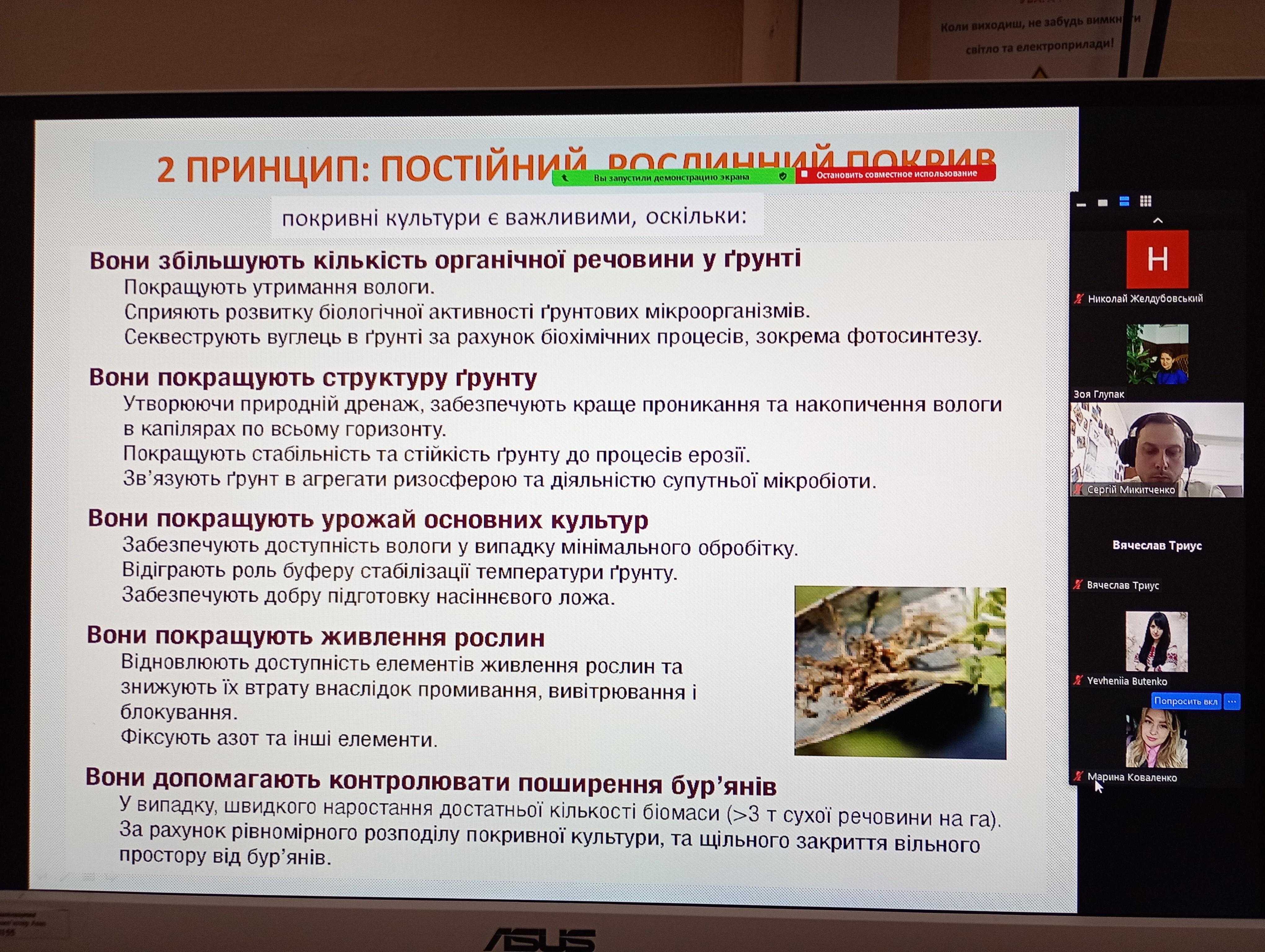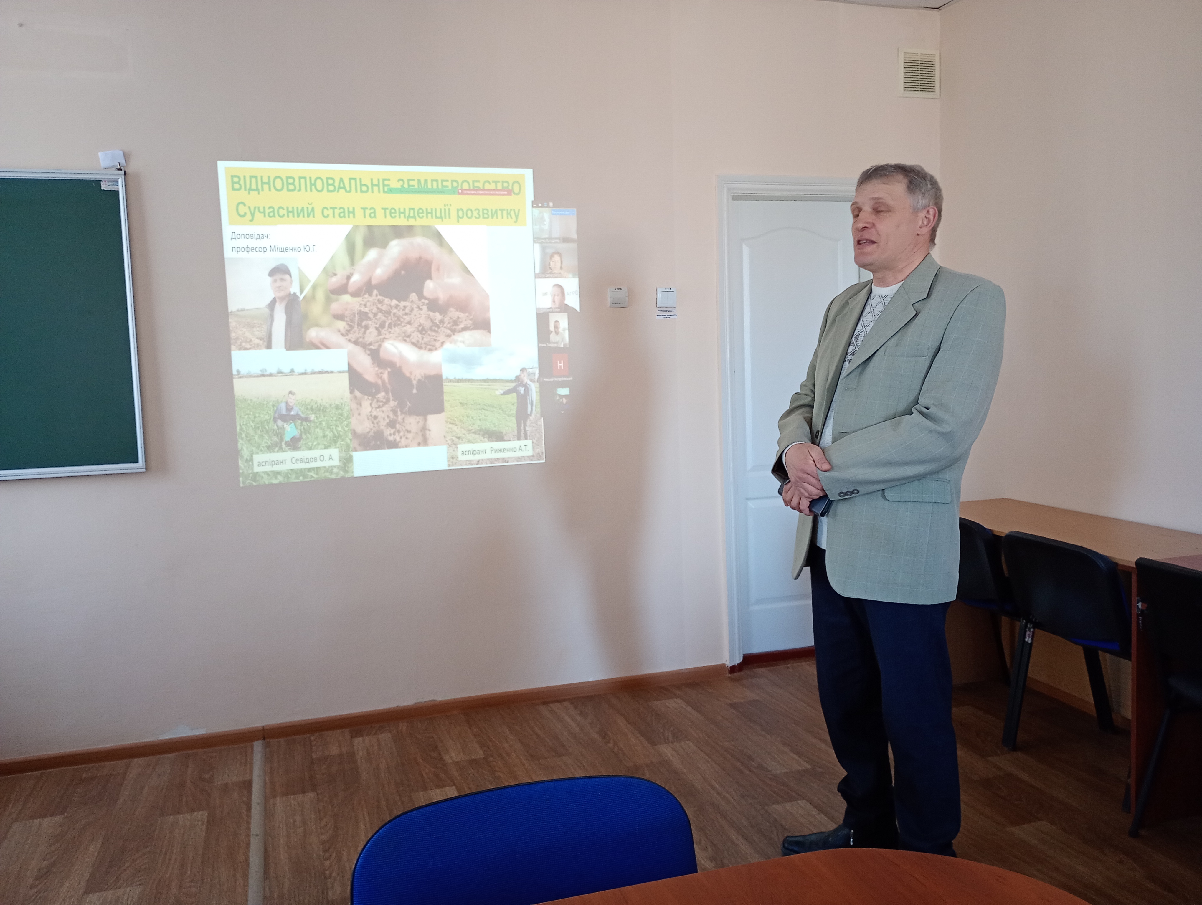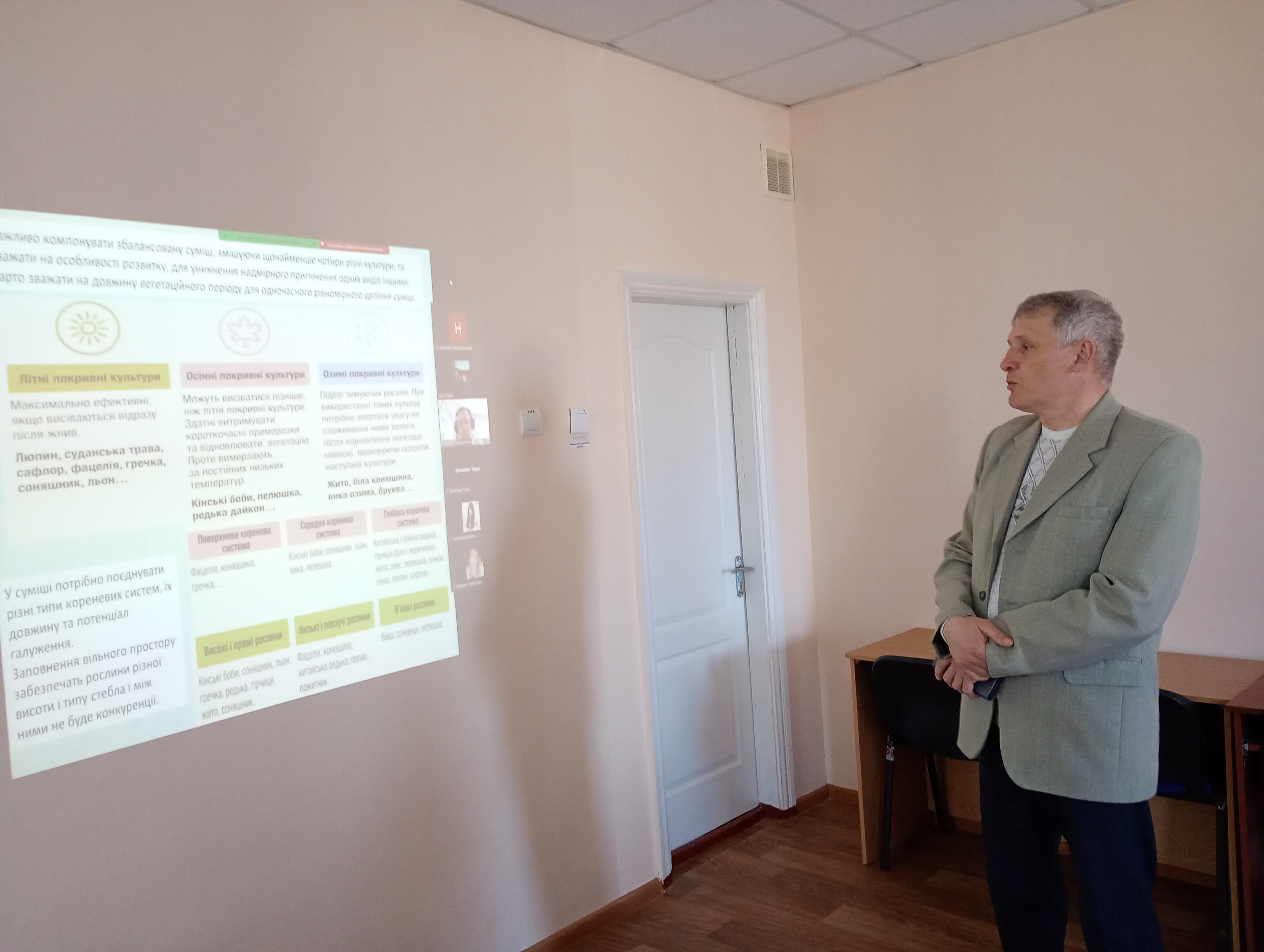У ході наукового семінару, який відбувся на кафедрі агротехнологій та грунтознавства 24 березня, професор кафедри Міщенко Юрій Григорович, розповів про переваги одного з елементів відновлювального землеробства — практику вирощування покривних і підсівних культур, або, як їх ще називають, — інтеркропів. Крім того, дав рекомендації щодо їх вирощування.