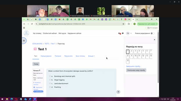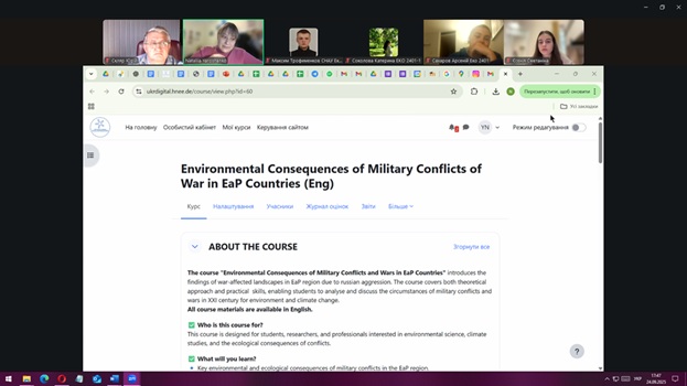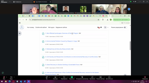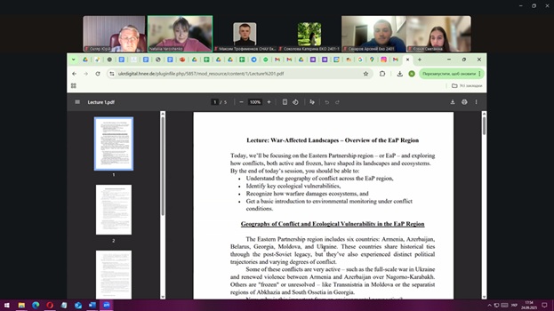 25 вересня 2025 року для здобувачів вищої освіти першого (бакалаврського) рівня групи ЕКО 2401 була проведена кураторська година, на якій старший викладач кафедри екології та ботаніки Наталія ЯРОШЕНКО, з урахуванням власного досвіду участі у міжнародних проєктах, ознайомила студентів із можливими напрямками та тематиками неформальної освіти. Зокрема, здобувачам була надана детальна інформація про зміст та структуру курсу «Environmental Consequences of Military Conflicts of War in EaP Countries (Eng)», підготовленого при залученні Н. Ярошенко у рамках функціонування Ukrainian-German Digital Teaching Network та до вивчення якого можна залучитись найближчим часом.
