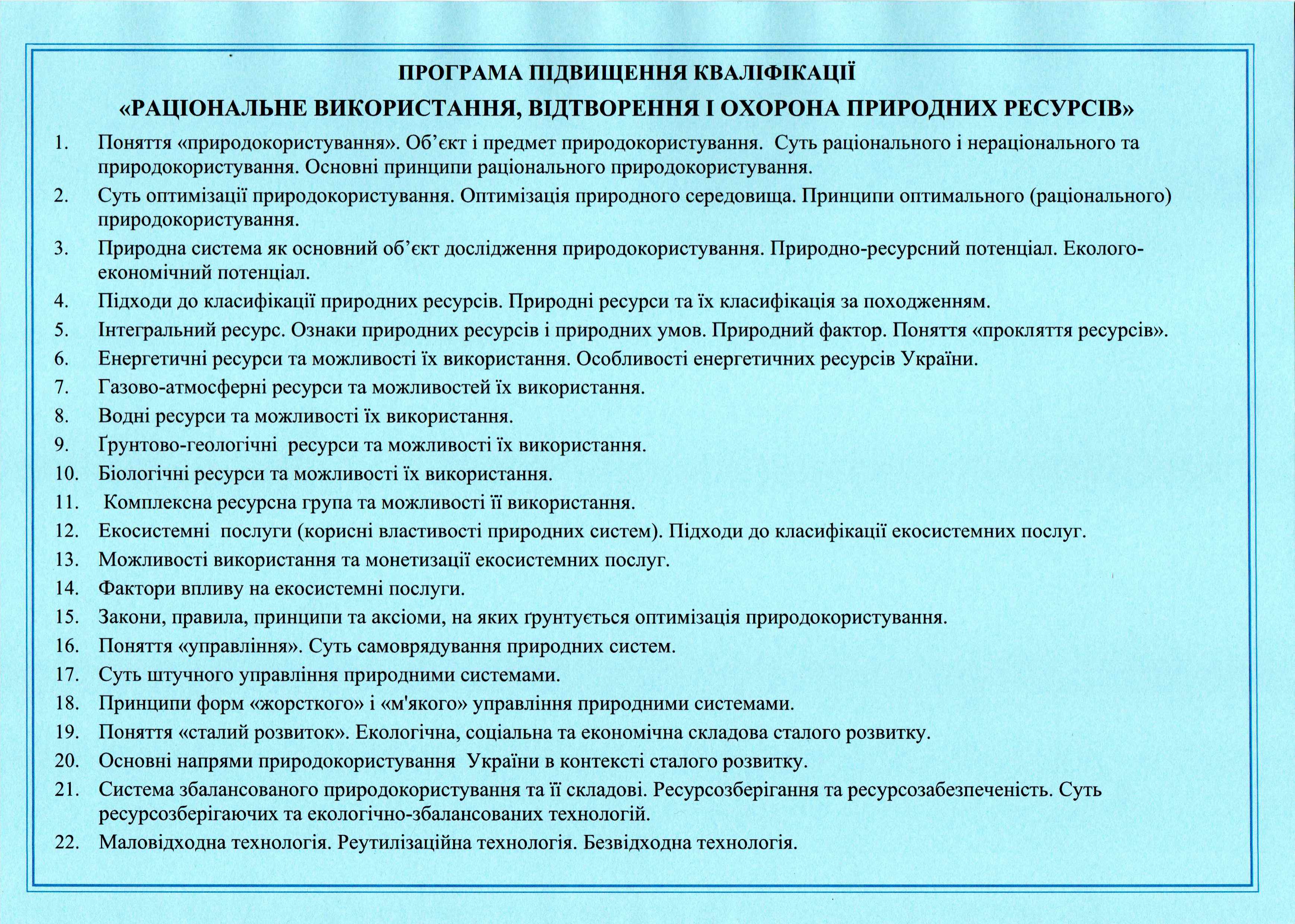 - професор Скляр В.Г. за темою: «РАЦІОНАЛЬНЕ ВИКОРИСТАННЯ, ВІДТВОРЕННЯ І ОХОРОНА ПРИРОДНИХ РЕСУРСІВ».