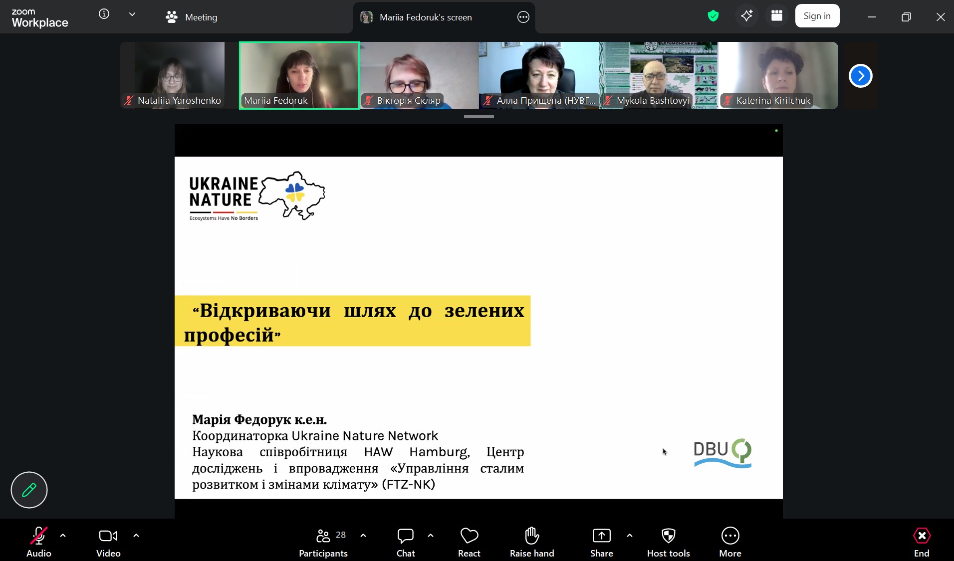 26 березня на кафедрі екології та ботаніки було проведено гостьову онлайн-зустріч із PhD Марією Федорук, науковою співробітницею Гамбурзького університету прикладних наук. Під час зустрічі студенти та викладачі могли ознайомитися про можливості професійного розвитку у сфері екології, сталого розвитку та зелених трансформацій, а також про сучасні виклики й перспективи формування зеленої кар’єрної стежки. Спікерка також поділилася актуальними проектами, над якими активно працює у міжнародних консорціумах, розповіла про мережу Ukraine Nature та її роль у формуванні партнерських відносин між університетами. Також Марія звернула увагу на особливості залучення студентів у різноманітних проектних активностях у Німеччині та в Україні. Зустріч викликала живу дискусію щодо актуальності зелених професій відповідно до Human Development Report 2026 (ООН) та аспекти зацікавлення студентів до вивчення наук природничого напрямку.