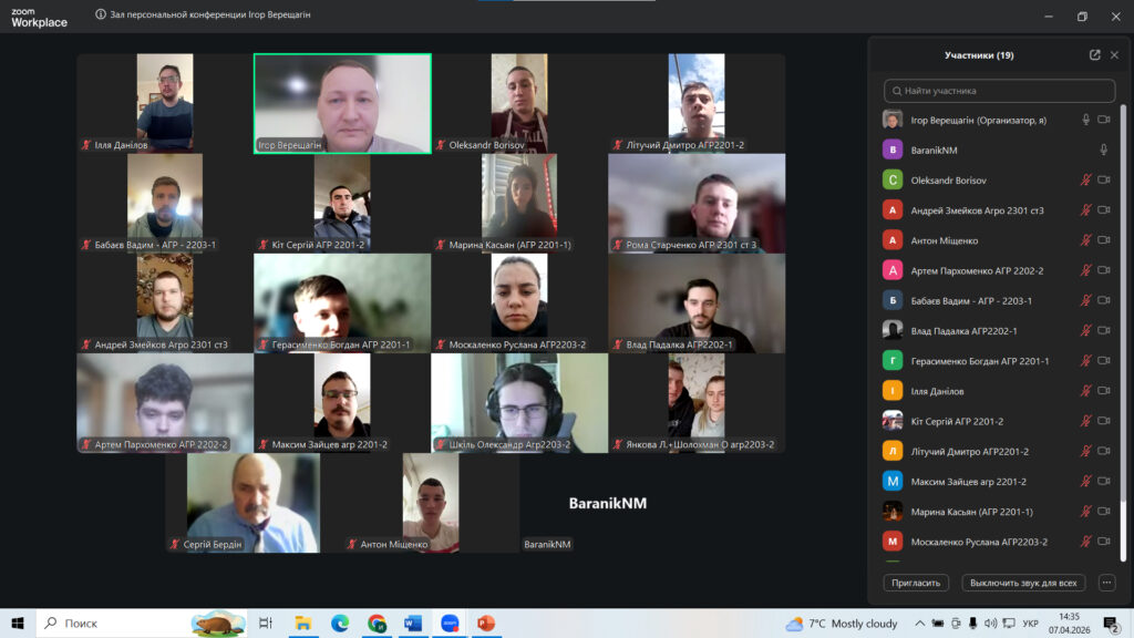 07.04.2026 р. була проведена відкрита лекція к.с.-г.н., доц. кафедри селекції та насінництва імені професора М. Д. Гончарова Сумського національного аграрного університету Верещагіним Ігорем Володимировичем з дисципліни «Методи контролю в насінництві» для студентів 4 та 3 ст курсів спеціальності «Агрономія». Тема лекції: «Методи аналізування зараженості хворобами та заселеності насіння шкідниками».