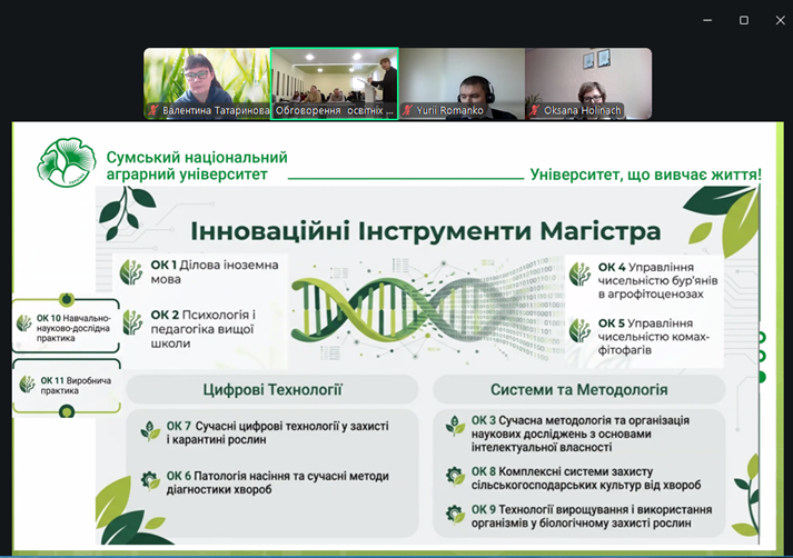 У заході взяли участь науково-педагогічні працівники кафедри, гаранти освітніх програм, представники адміністрації факультету, а також запрошені стейкхолдери — роботодавці та здобувачі освіти. Під час обговорення було проаналізовано структуру програм, перелік освітніх компонентів, відповідність результатів навчання сучасним вимогам аграрної галузі та ринку праці, а також узгодженість програм із чинними стандартами вищої освіти.