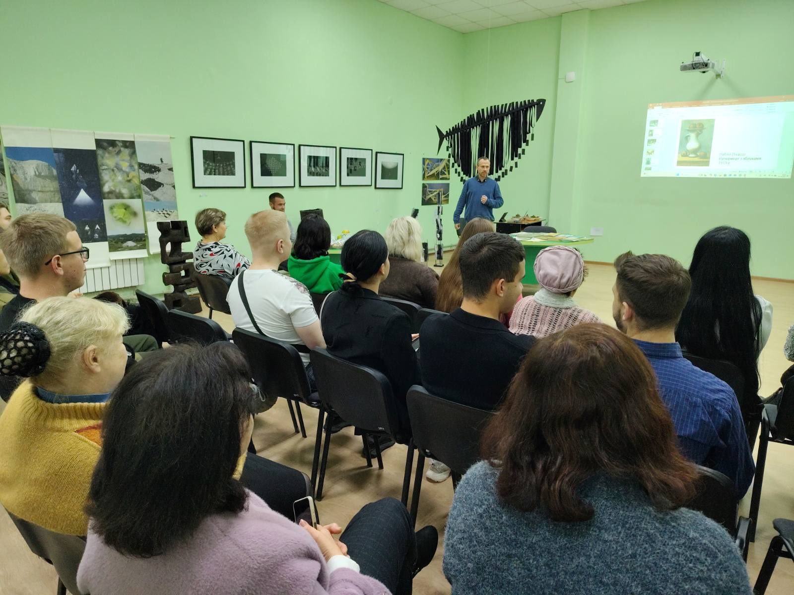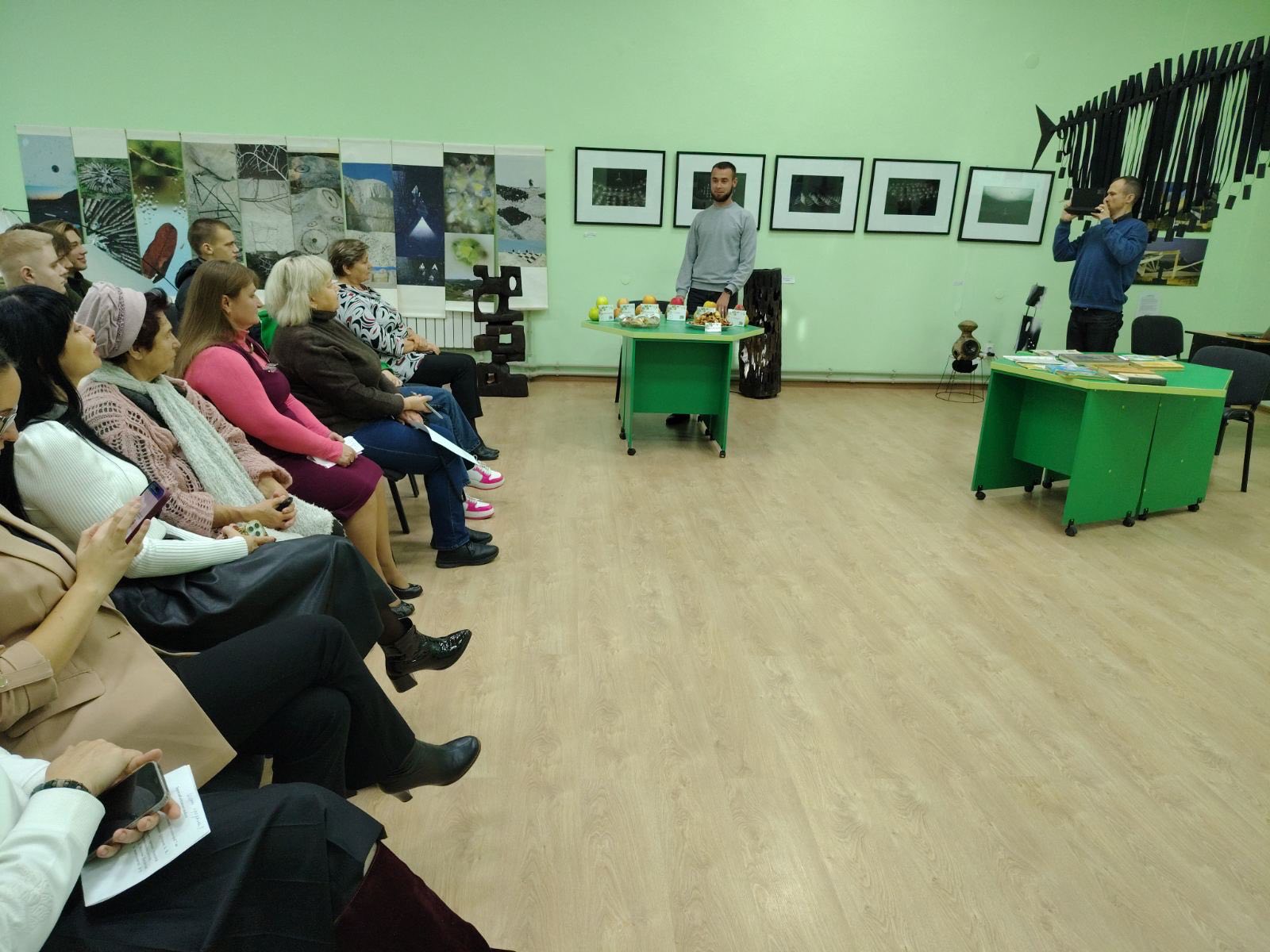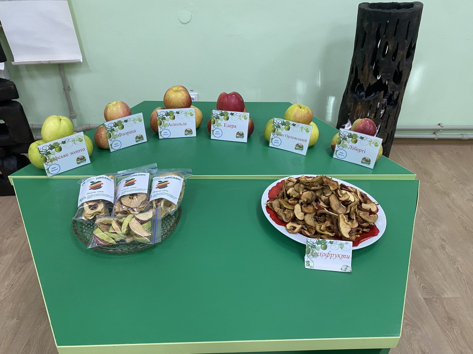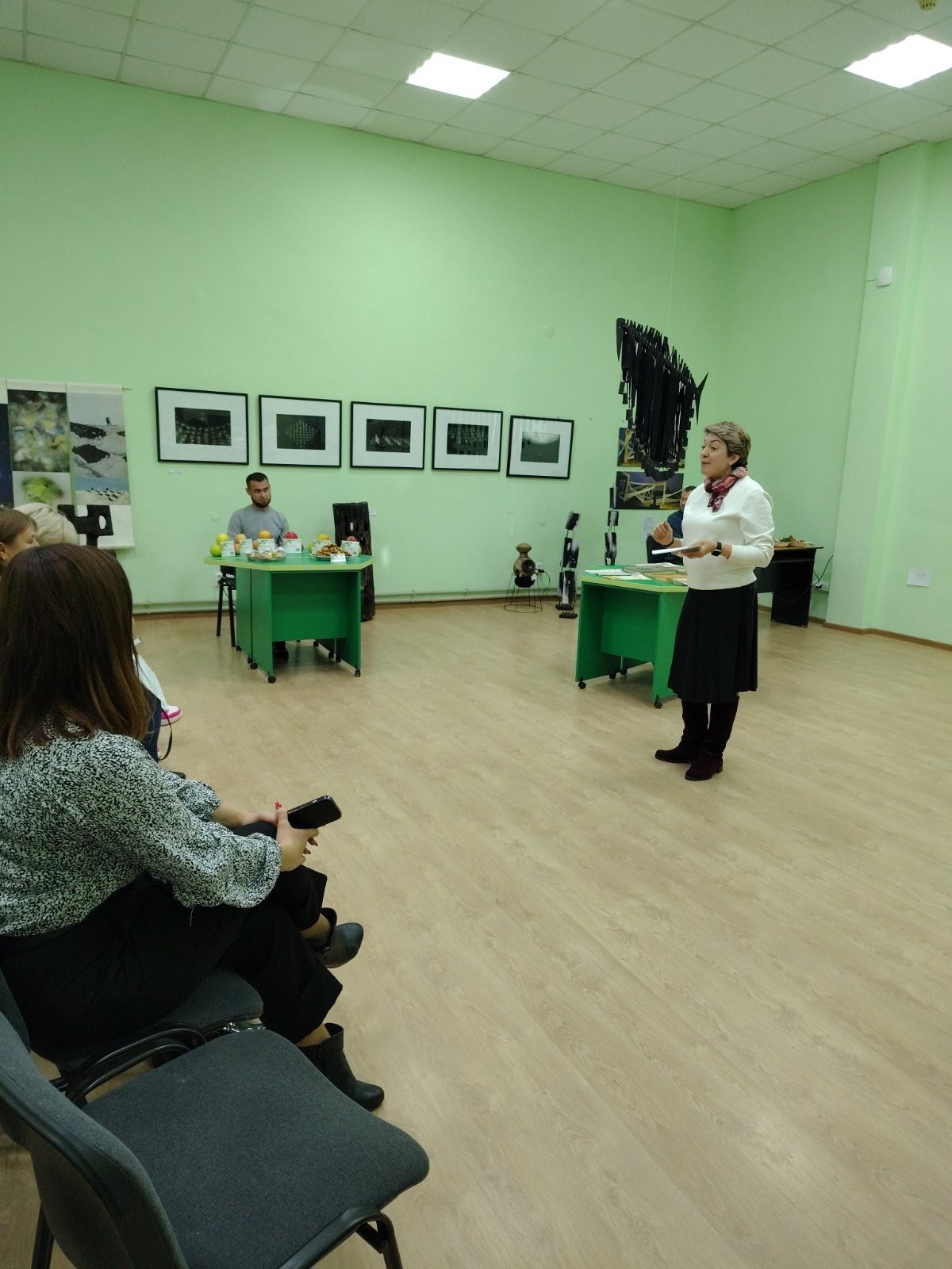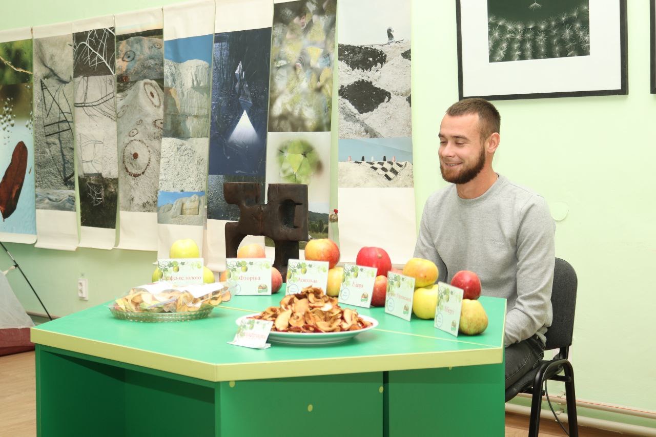 Він розповів про сад університету імені Мішньова , ознайомив присутніх із різноманіттям сортів яблунь, що ростуть у навчальному саду, серед яких є як традиційні українські, так і сучасні селекційні сорти.