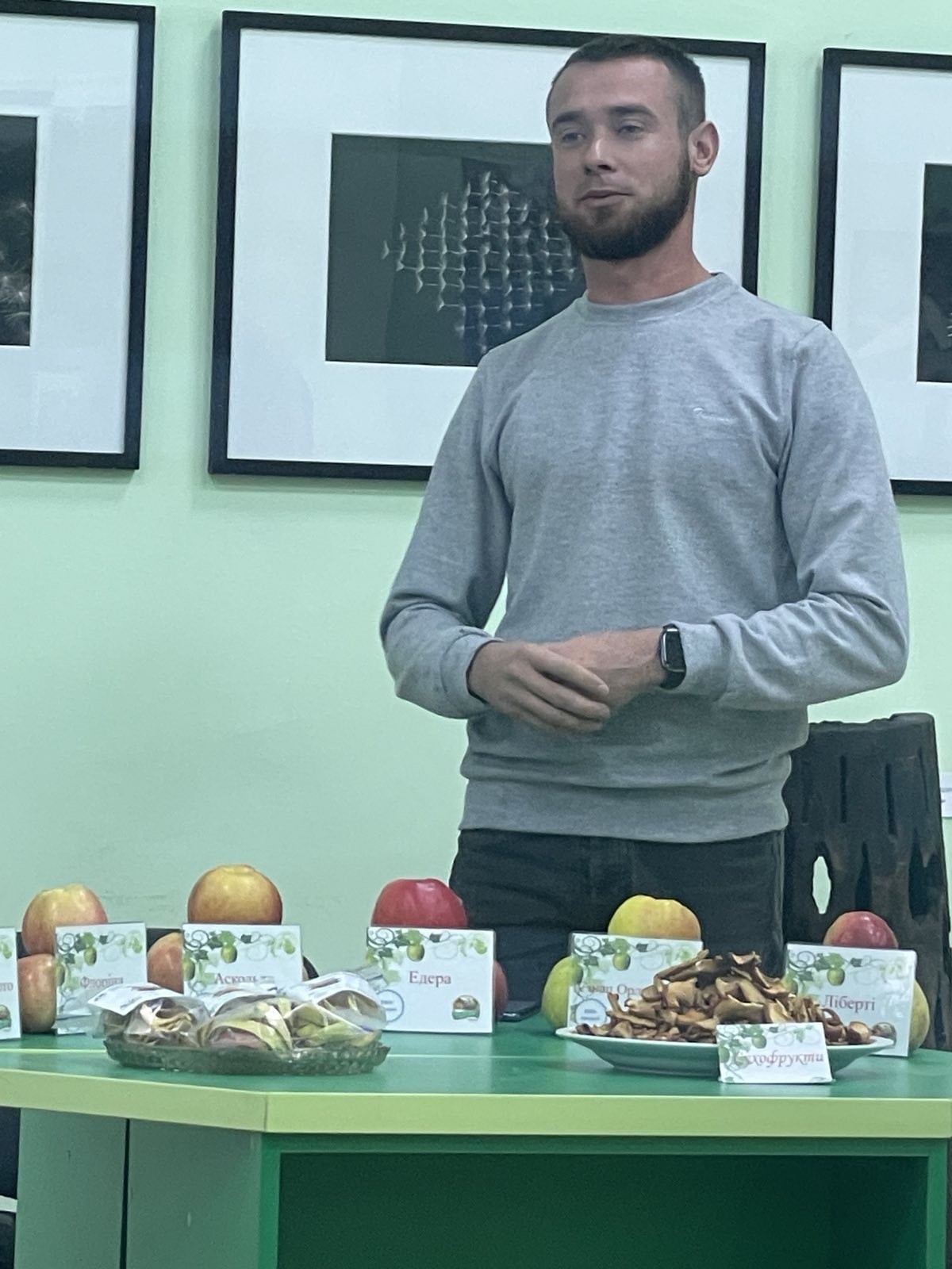 Також Антон Васильович поділився інформацією про основні напрями діяльності лабораторії — вирощування та догляд за плодовими культурами, проведення досліджень, практичне навчання студентів, а також впровадження інновацій у садівництві.