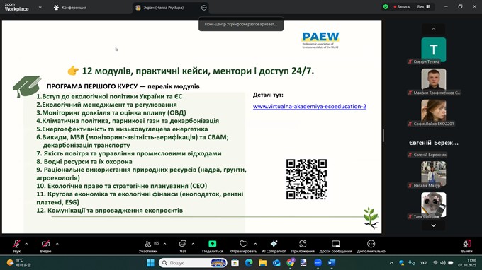 Дякуємо спікерам за надання важливої інформації про проєкт, а розробникам навчальних курсів – за можливість залучитись до навчання у віртуальній академії екологічної освіти.