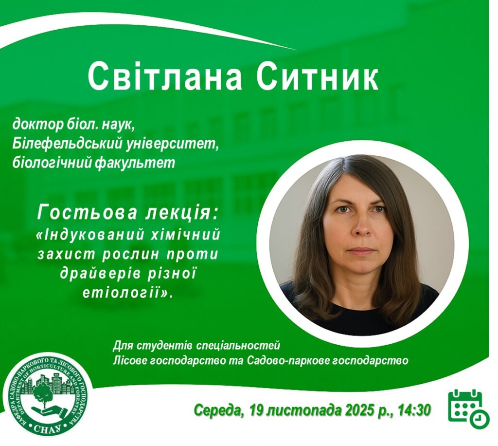 Лекція проводиться для студентів ОПП «Лісове господарство» та ОПП «Садово-паркове господарство» в рамках міжнародного науково-освітнього співробітництва кафедри садово-паркового та лісового господарства Сумського НАУ з Білефельдським університетом (Німеччина).